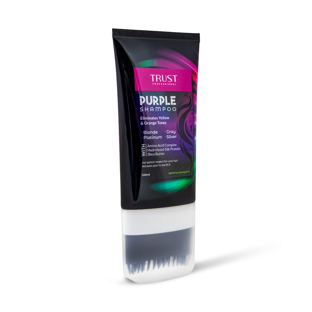هفته ای یکبار شامپو بنفش تراست را بر روی موهای خیس ماساژ داده و اجازه دهید تا پنج دقیقه آغشته بماند سپس با آب بشوئید. پیشنهاد می گردد هنگام مصرف از دستکش یکبار مصرف استفاده شود.